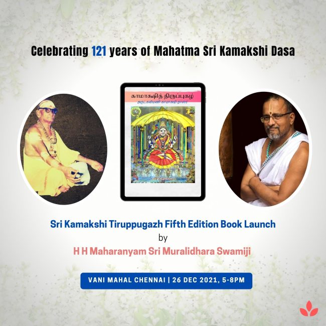 H H Maharanyam Sri Muralidhara Swamiji will bless the launch of the 5th edition of Sri Kamakshi Tiruppugazh on 26 Dec 2021 @ Vani Mahal, Chennai (5 – 8pm). Free…