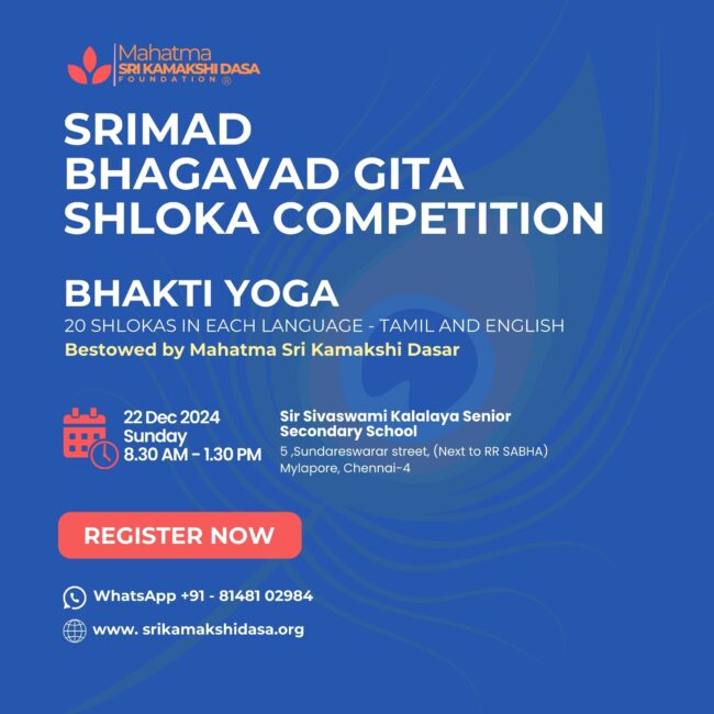 Namaste, We welcome students to participate in Srimad Bhagavad Gita Competition. Open for students from Class 6 to 9. For more details or registration, WhatsApp at +91 81481 02984. Study…